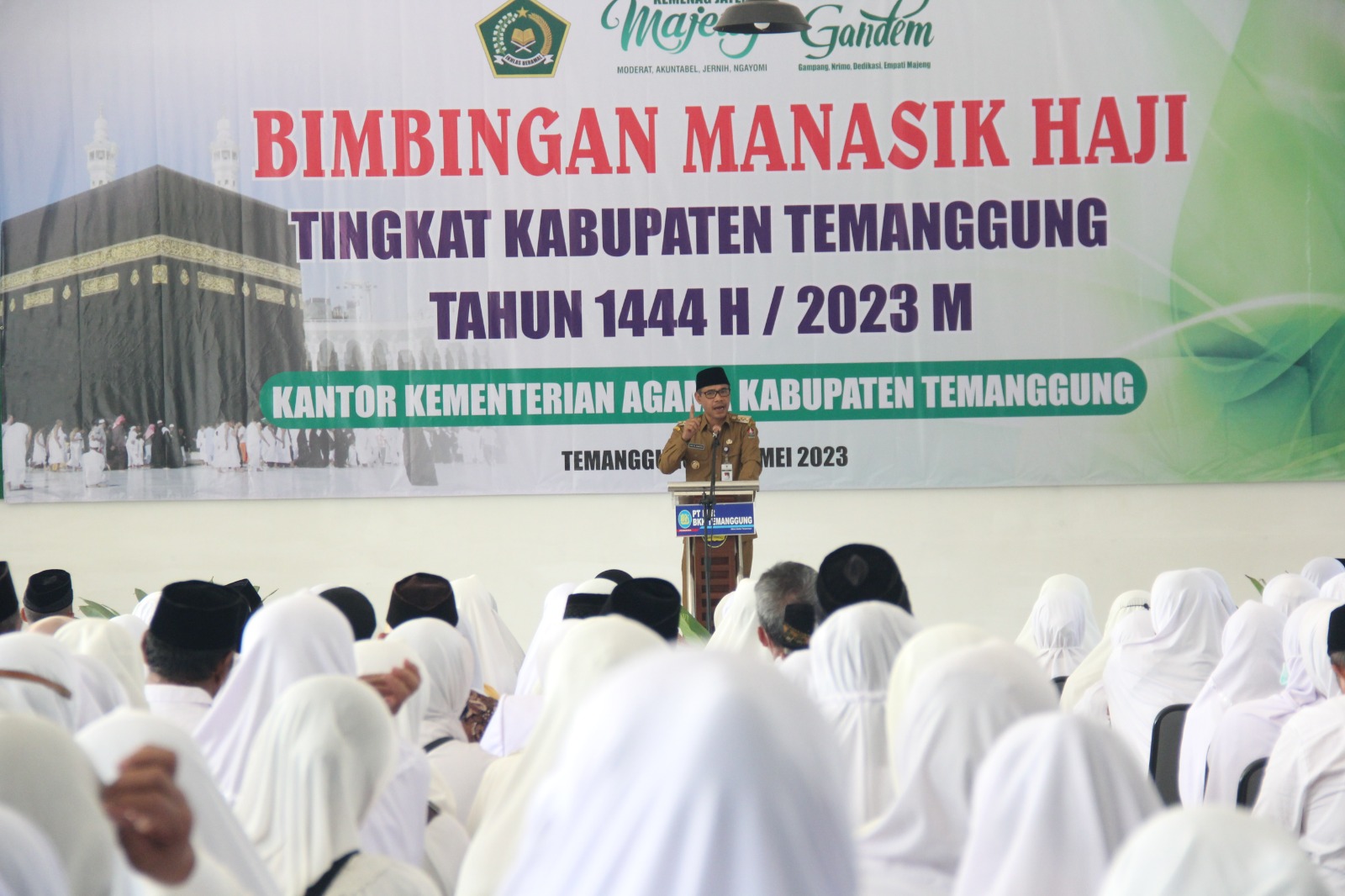 Bupati dalam sambutannya menyampaikan, selamat kepada calon jemaah haji tahun 2023 dari Kabupaten Temanggung yang terpilih oleh Allah SWT untuk berangkat menunaikan ibadah haji ke Tanah Suci Mekah.