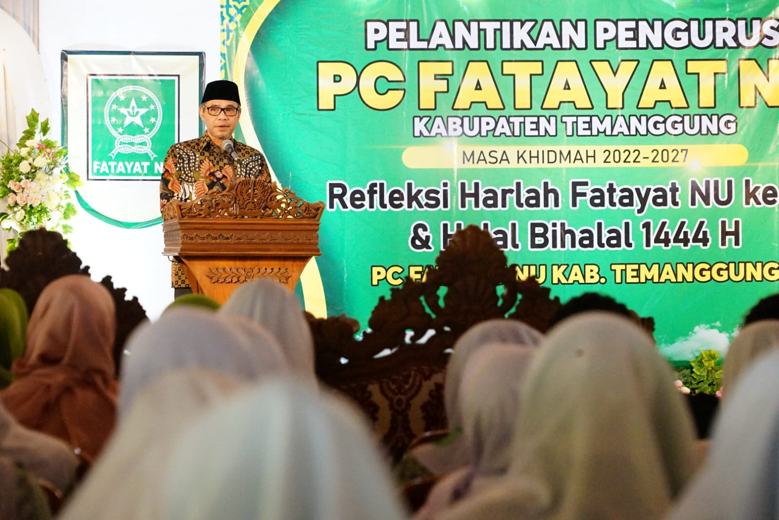 RILISJATENG.COM-  Bupati Temanggung HM. Al Khadziq bersama Ketua DPRD Yunianto menghadiri Pelantikan Pengurus PC Fatayat NU Masa Khidmah 2023-2027, sekaligus Peringatan Hari Lahir Fatayat NU ke-73 di Pendopo Pengayoman, Kamis (18/5/2023).